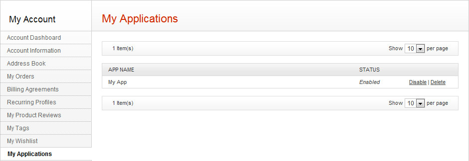 - On the frontend, click My Account and then select the My Applications tab on the left.